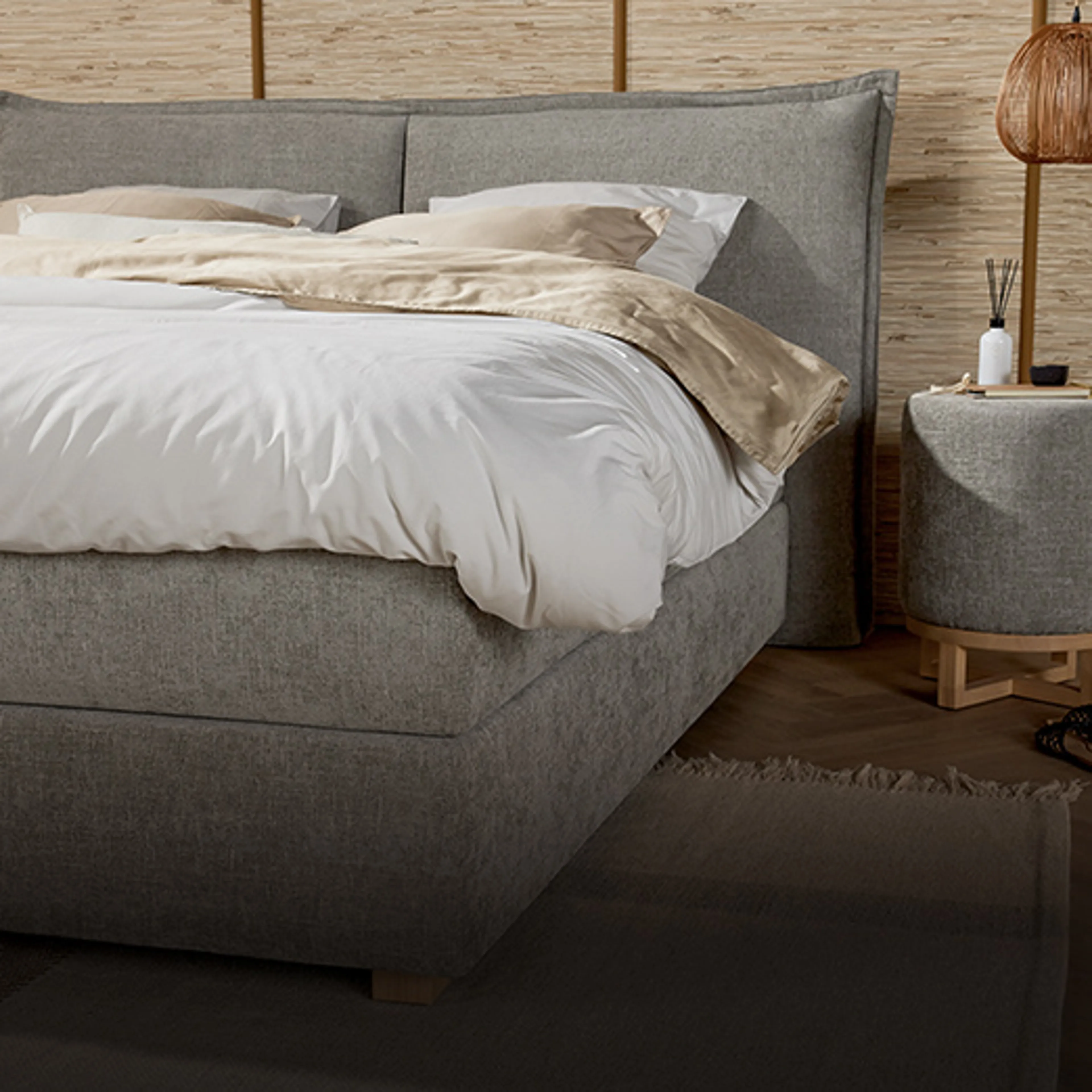 Die Boxspringbetten aus unserer Kollektion können Sie ganz nach Wunsch zusammenstellen. Von Stoff und Farbe über Bettfüße bis hin zu Matratze und Topper.