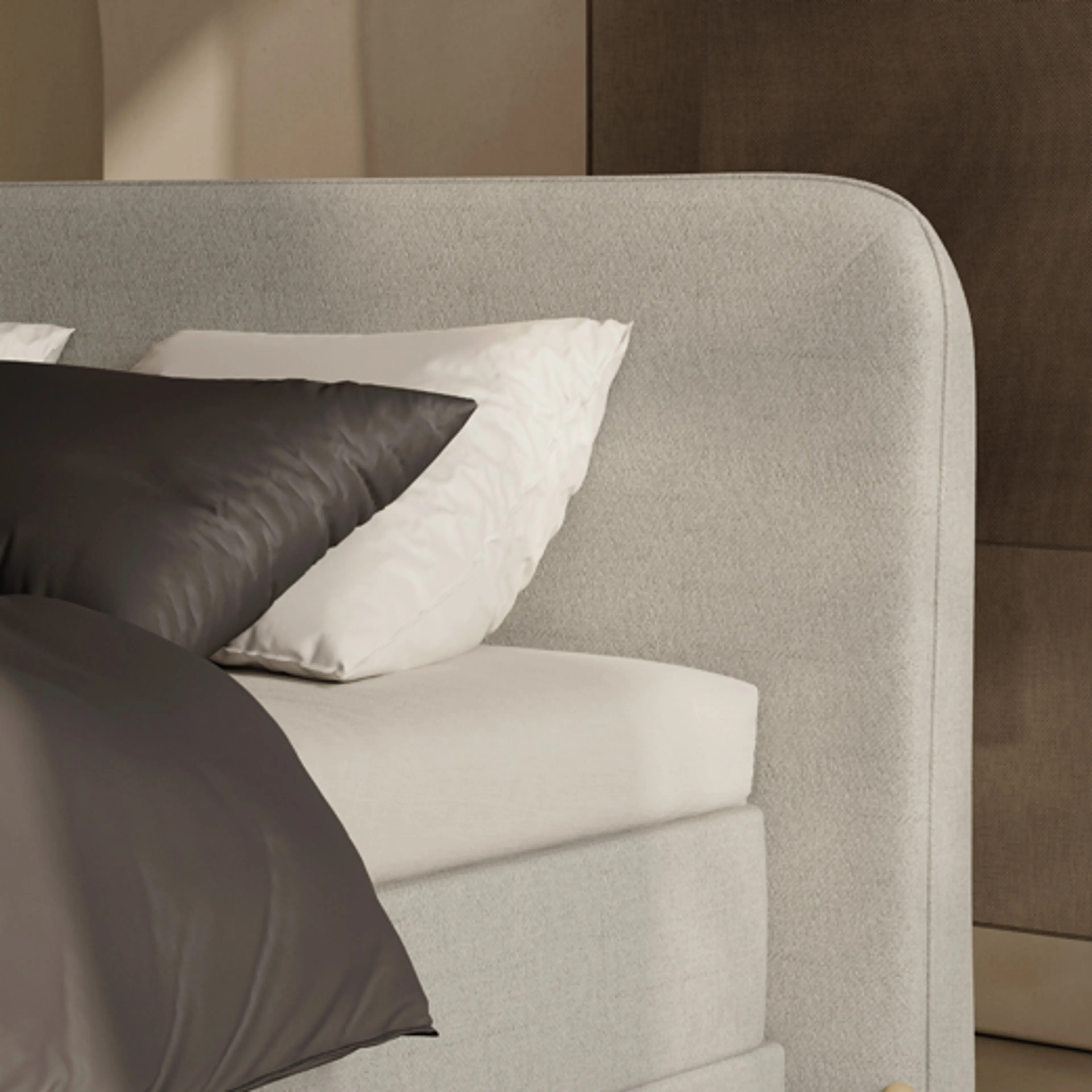Die Kombination aus hochwertigen Stoffen und natürlichen Materialien verleiht dem Bett zeitlose Eleganz. Perfekt für Designliebhaber, die Liebe zum Detail schätzen.