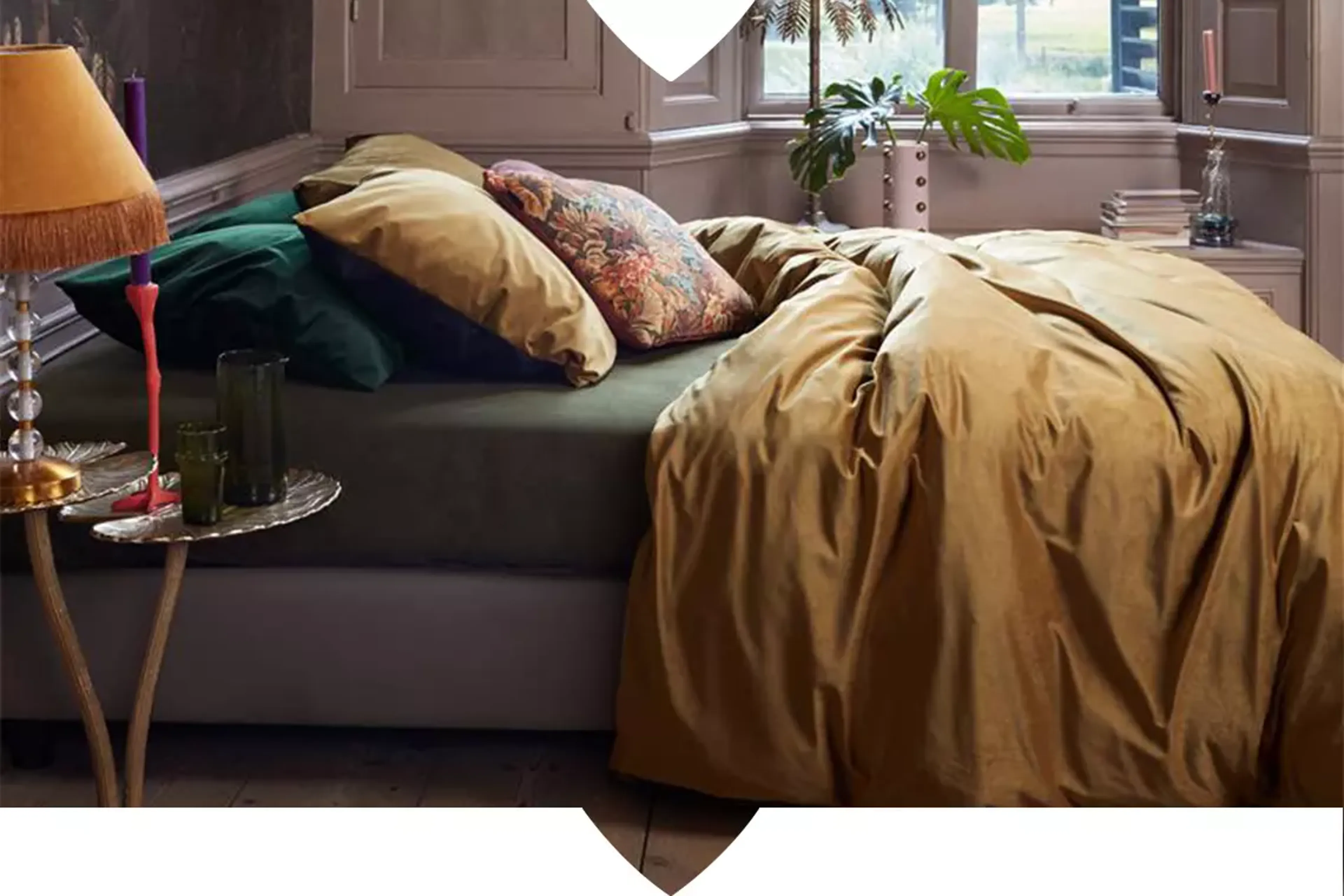 Diese Farbkombination verleiht dem Schlafzimmer eine warme Atmosphäre, so wie auf dem Foto mit Bettbezug Tender. So verwandelt sich dein Bett in ein herrlich warmes Nest, in das du dich jeden Abend gern einkuschelst.