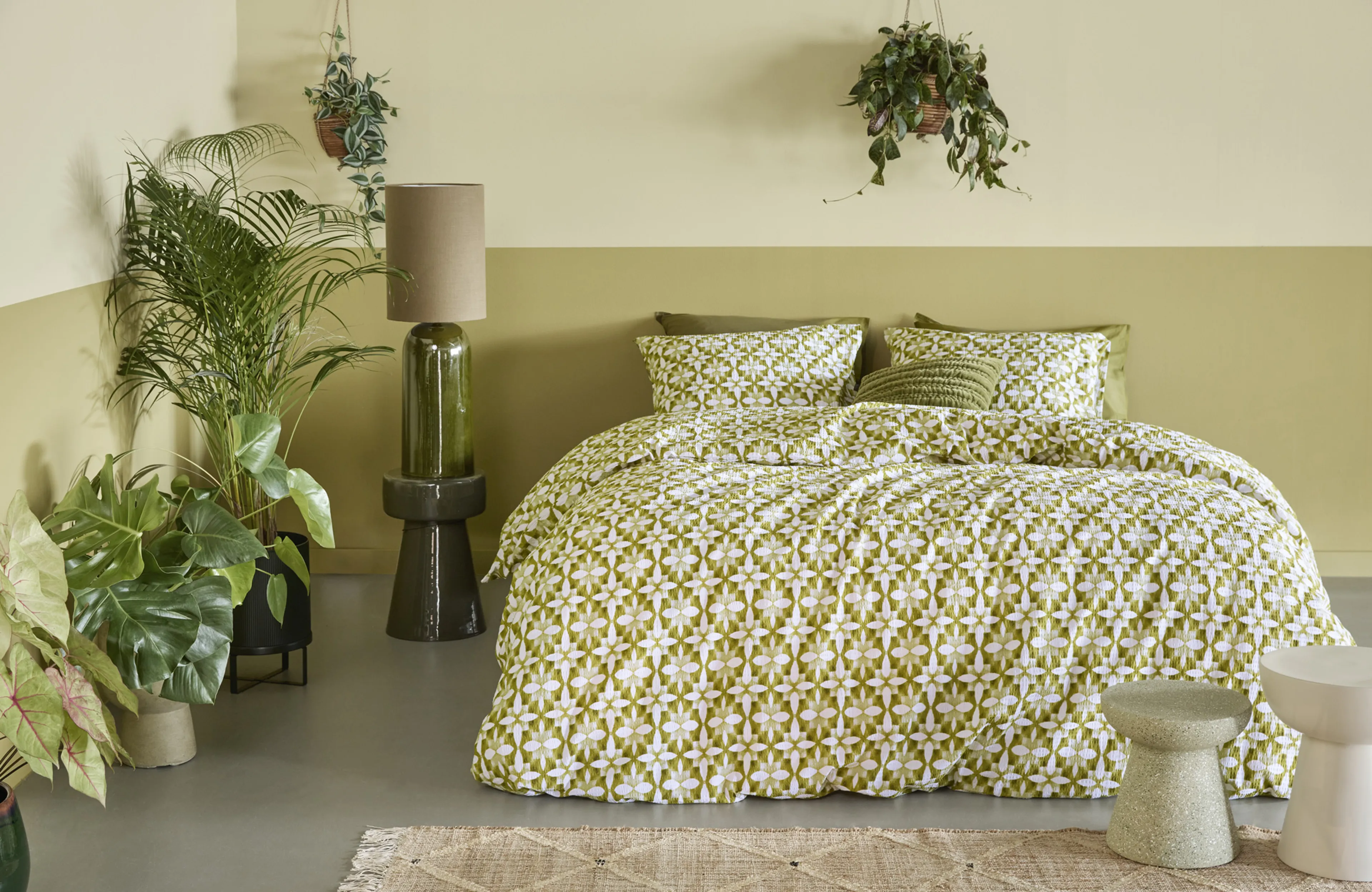 Suchen Sie eine moderne und trendige Bettwäsche? Die Bettwäsche Mae von Beddinghouse ist die perfekte Wahl. Das handgemalte Kachelmuster in frischen Grüntönen, von Oliv über Hellgrün bis Weiß, verleiht Ihrem Schlafzimmer einen stilvollen Look. Der Seersucker-Stoff, ein leichtes und leicht geknittertes Material, bietet eine hervorragende Atmungsaktivität und Feuchtigkeitsaufnahme. Das sorgt für einen angenehmen Schlaf, besonders an warmen Abenden.