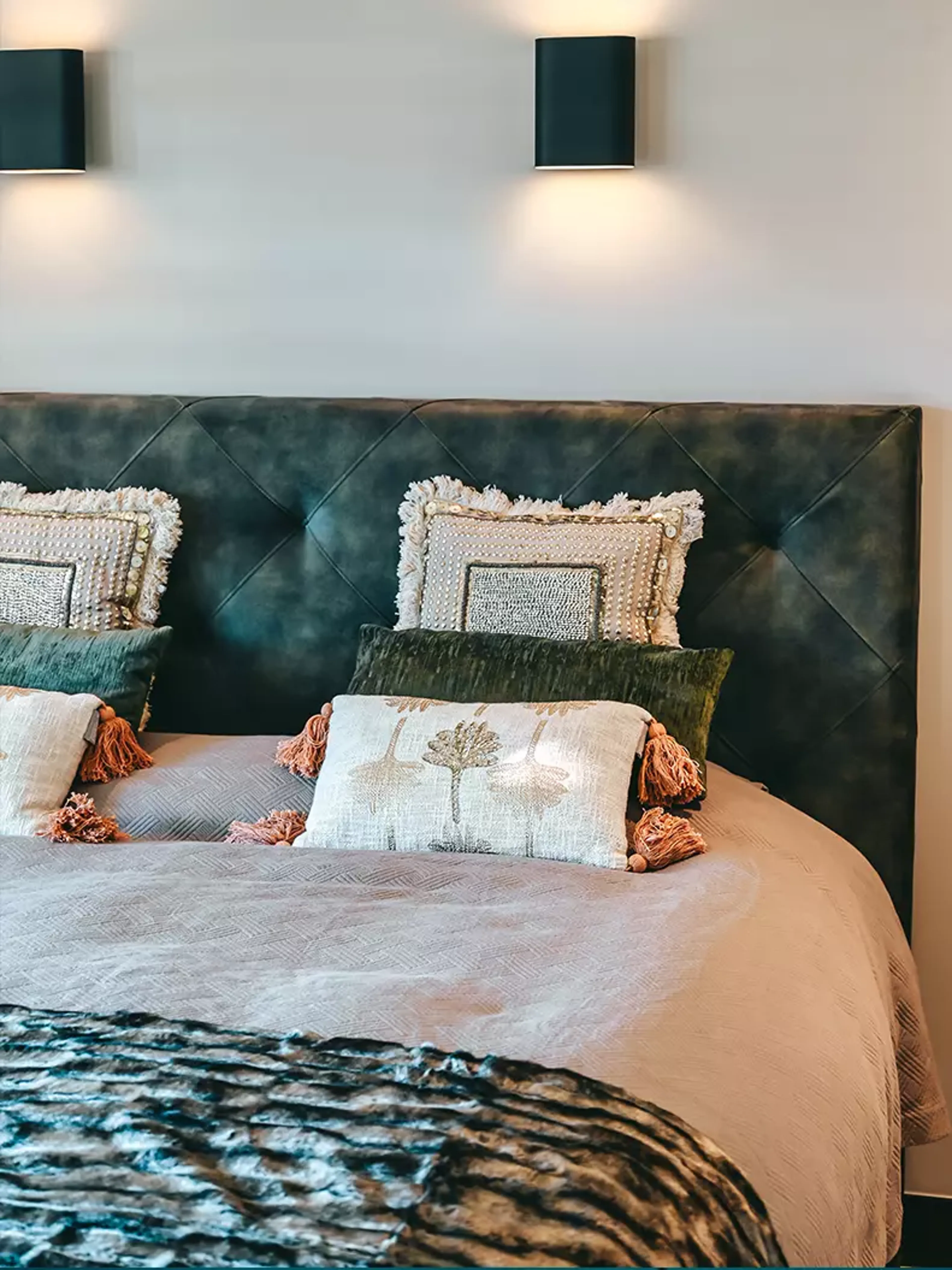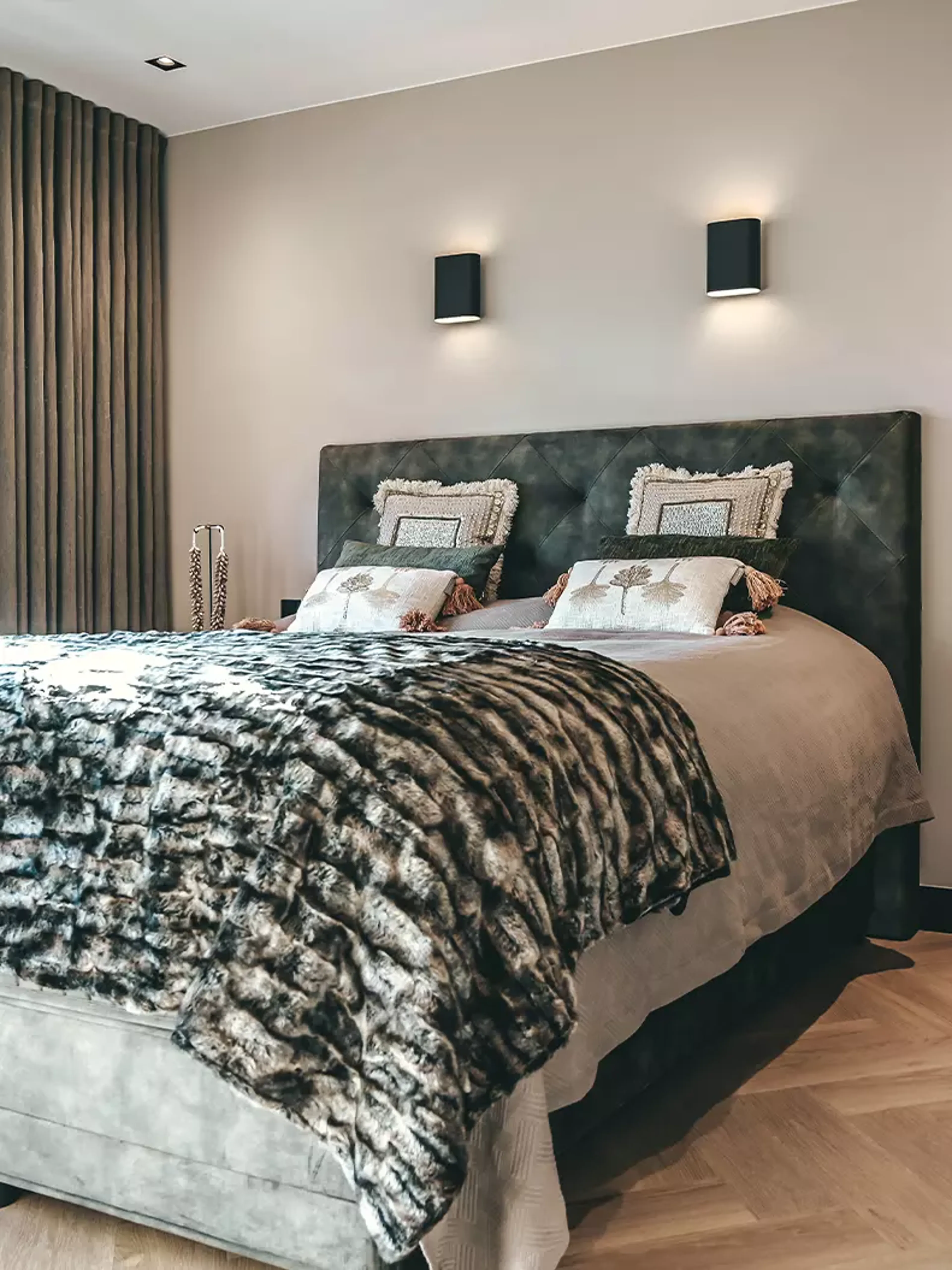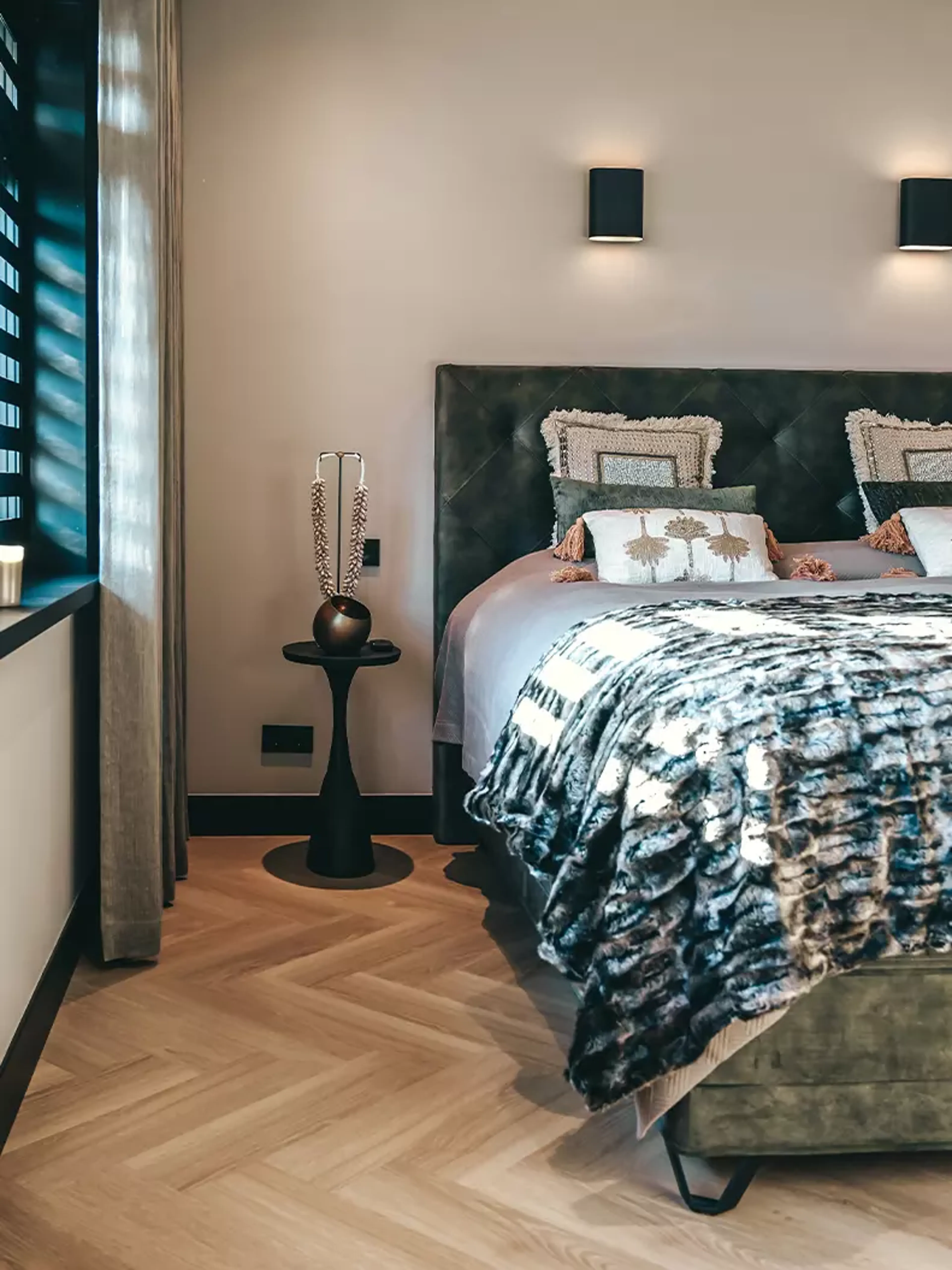Das Boxspringbett stellten sich Laura und Johan bereits vor ein paar Jahren nach ihren Wünschen zusammen – somit dürfte dieses im neuen Schlafzimmer natürlich nicht fehlen. "Wir kauften unser Boxspringbett vor knapp drei Jahren. Aufgrund von Rückenproblemen waren wir auf der Suche nach einem vernünftigen Bett und sahen das Boxspringbett Royal Babylon auf der Messe VT WONEN&DESIGN in Amsterdam. Es war Liebe auf den ersten Blick. Johan und ich wussten sofort, dass dies unser Bett ist: groß, hoch, breit und außergewöhnlich luxuriös – ebenso, wie man sich ein Hotelbett vorstellt. Die Beratung war hervorragend, wir fanden den perfekten Liegekomfort für uns und seither schlafen wir wie auf Wolken."