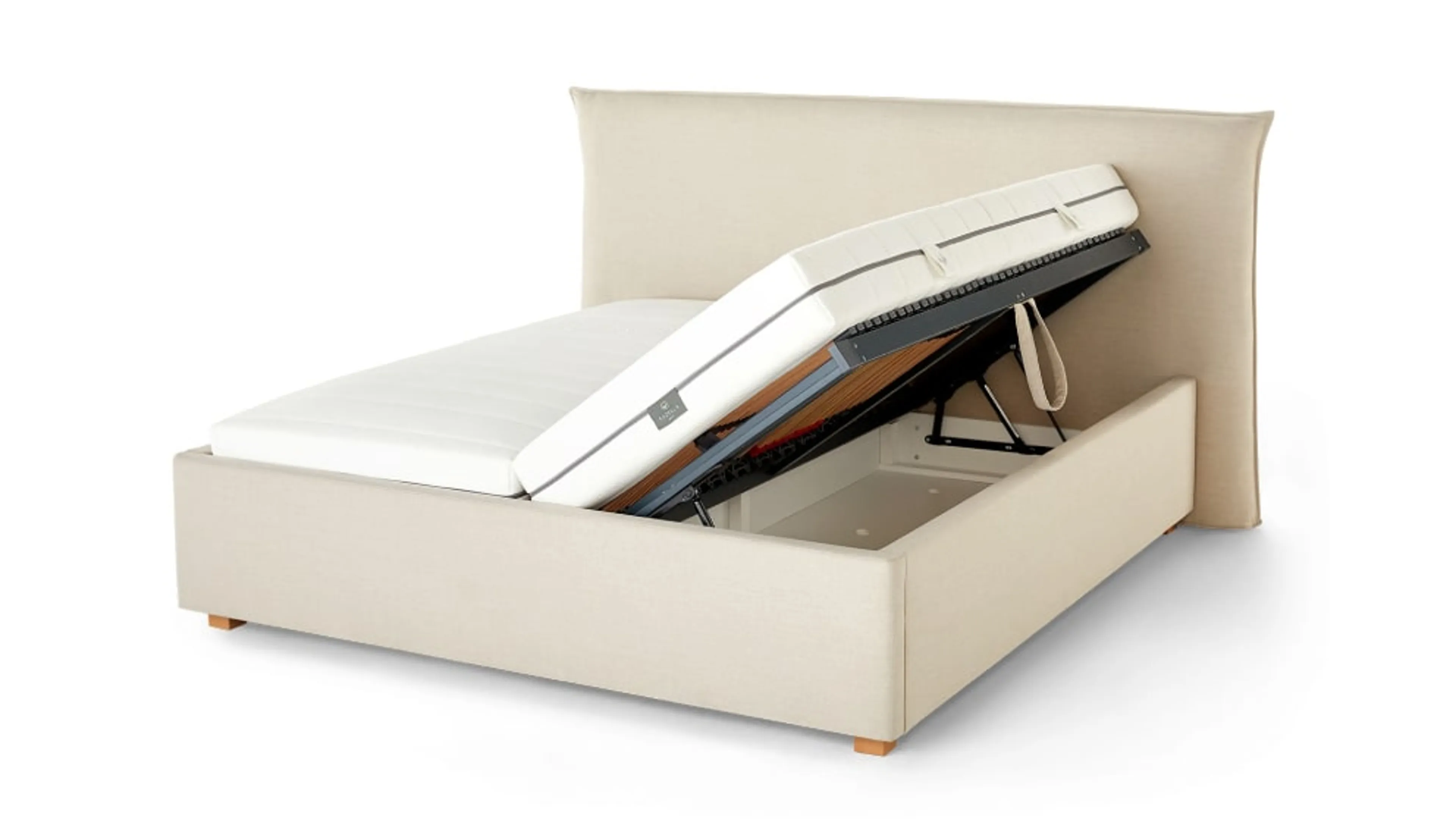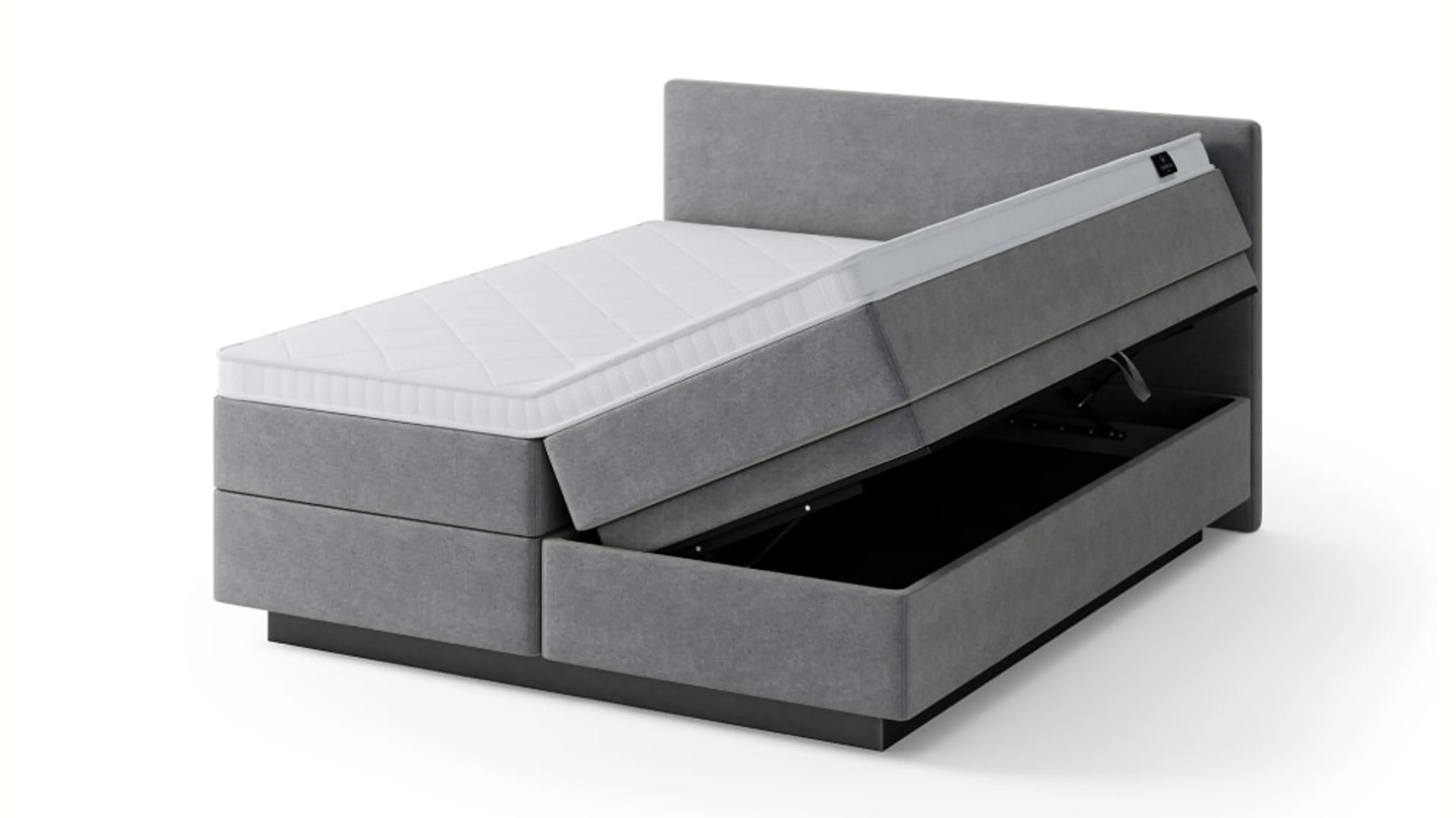 Bei den Bettgestellen, den elementa Boxspringbetten und dem Online-Only Taurus können Sie pro Seite maximal 50 kg im Bettkasten verstauen.