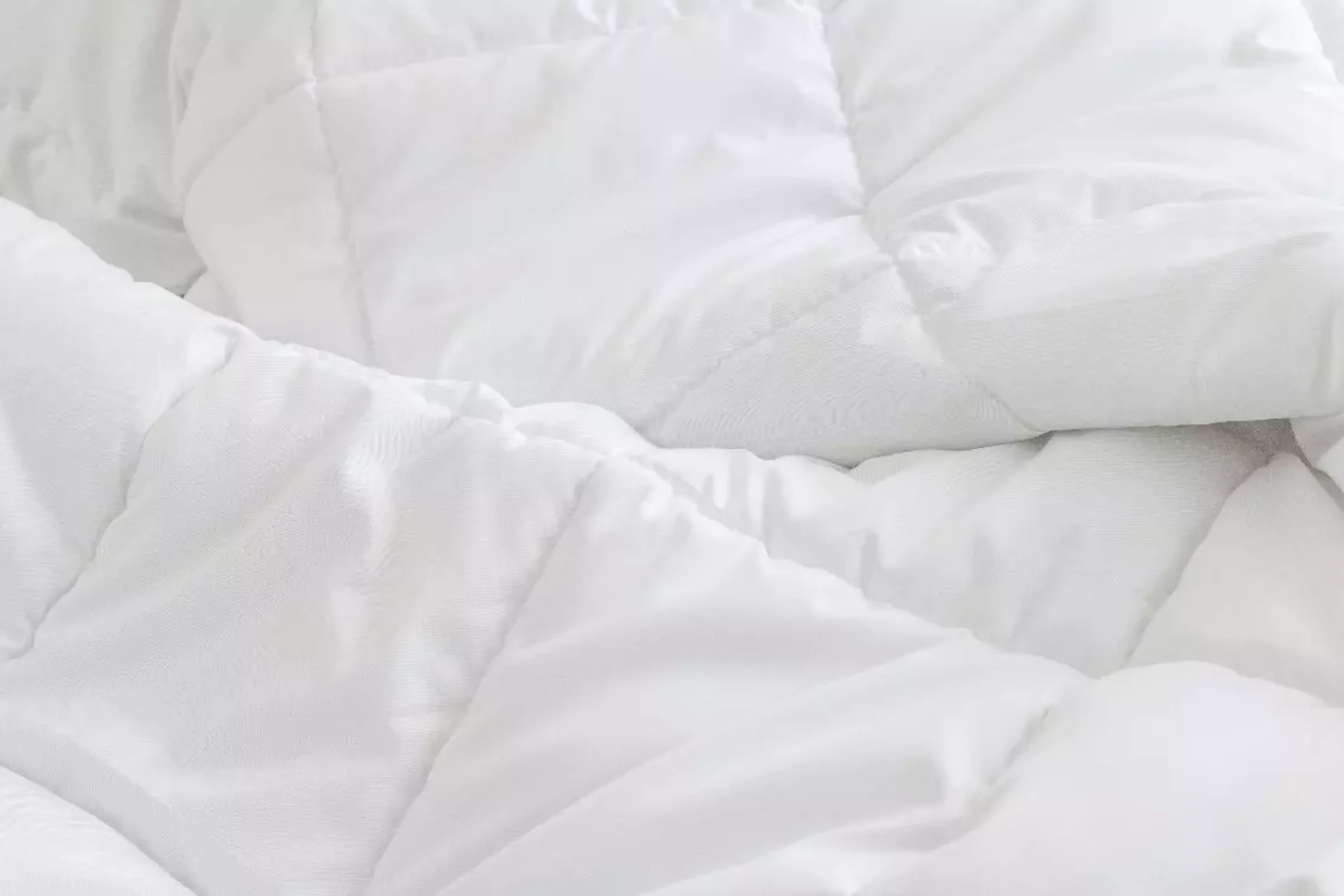 Das Down-Feel-Deckbett ist aus recycelten PET-Flaschen gefertigt. Und obwohl man vermuten könnte, dass es sich dadurch hart anfühlt, ist das keinesfalls so! Die Fasern werden pro Fach in die Bettdecke eingeblasen, genau wie bei einer Daunendecke. Daher lässt sich diese nachhaltige Alternative im Hinblick auf Komfort sehr gut mit einem Deckbett mit einer Gänsedaunen-Füllung vergleichen.