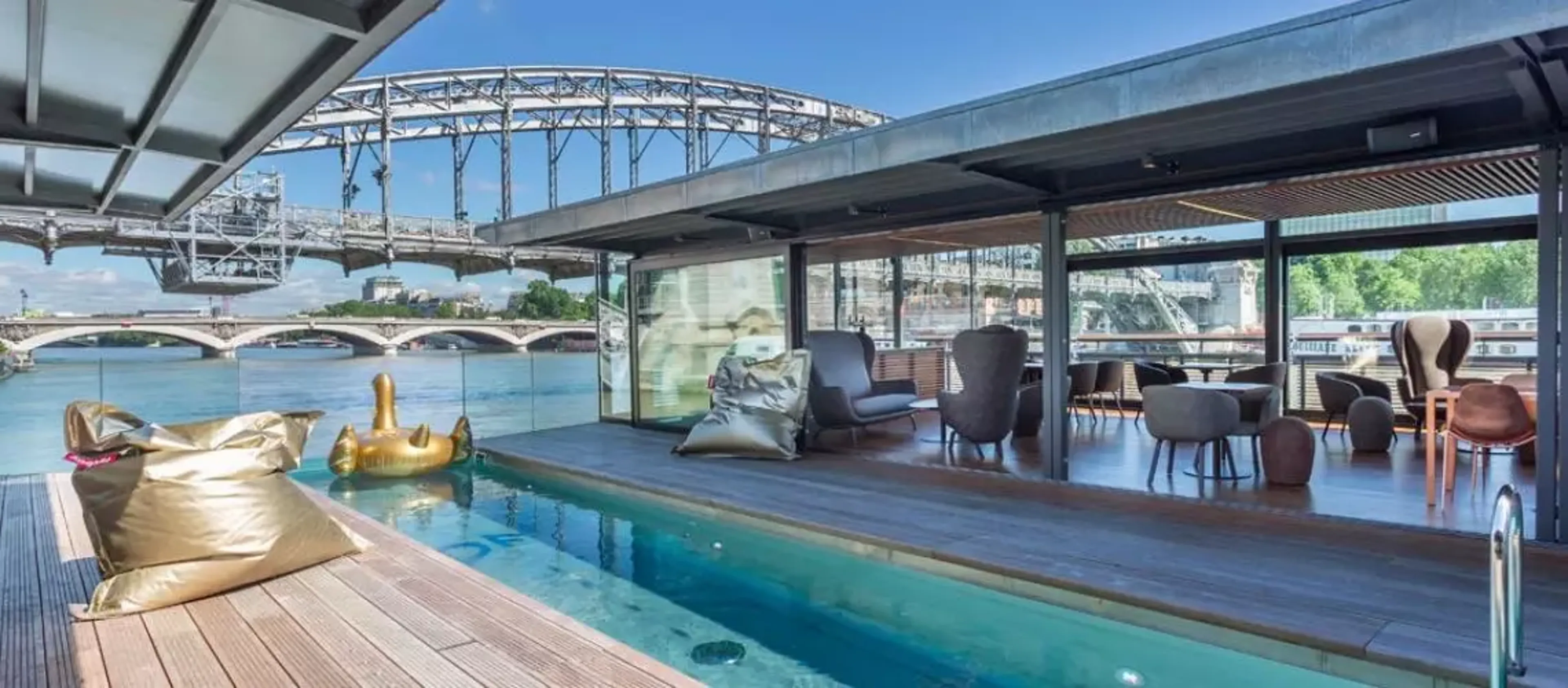 Verbringst du deinen Urlaub lieber in einer lebendigen Stadt? Das Off Floating Hotel treibt auf der Seine und ist das erste schwimmende Hotel der Stadt. Es befindet sich in unmittelbarer Nähe des Pariser Stadtzentrums. Nach einem erlebnisreichen Tag in der Stadt erholt man sich am Rand des luxuriösen Freiluftschwimmbades. Mit dutzenden von Zimmern, einem Yachthafen, einer Terrasse, einer Cocktailbar und einer traumhaften Aussicht auf die Stadt verdient dieses Hotel einen Platz auf deiner Bucketlist.