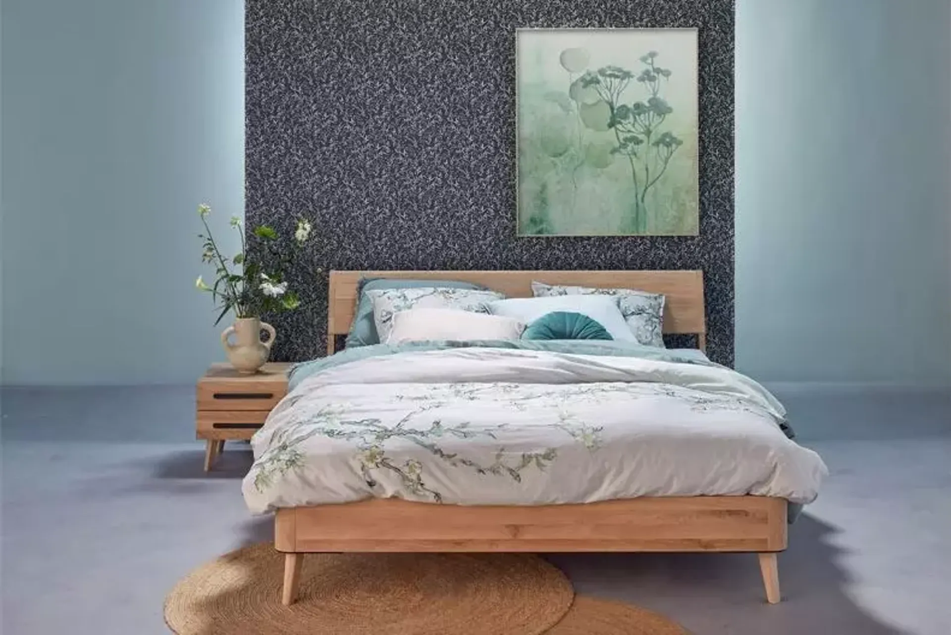 Es ist nicht verwunderlich, dass sich dieser Trend auch bei der Wahl der Materialien von der Natur inspirieren lässt. Kristel entschied sich für das Eichenbett Balance Tender und Baumwollbettwäsche – aber auch Leinen, Bambus und Kork passen gut ins Bild.