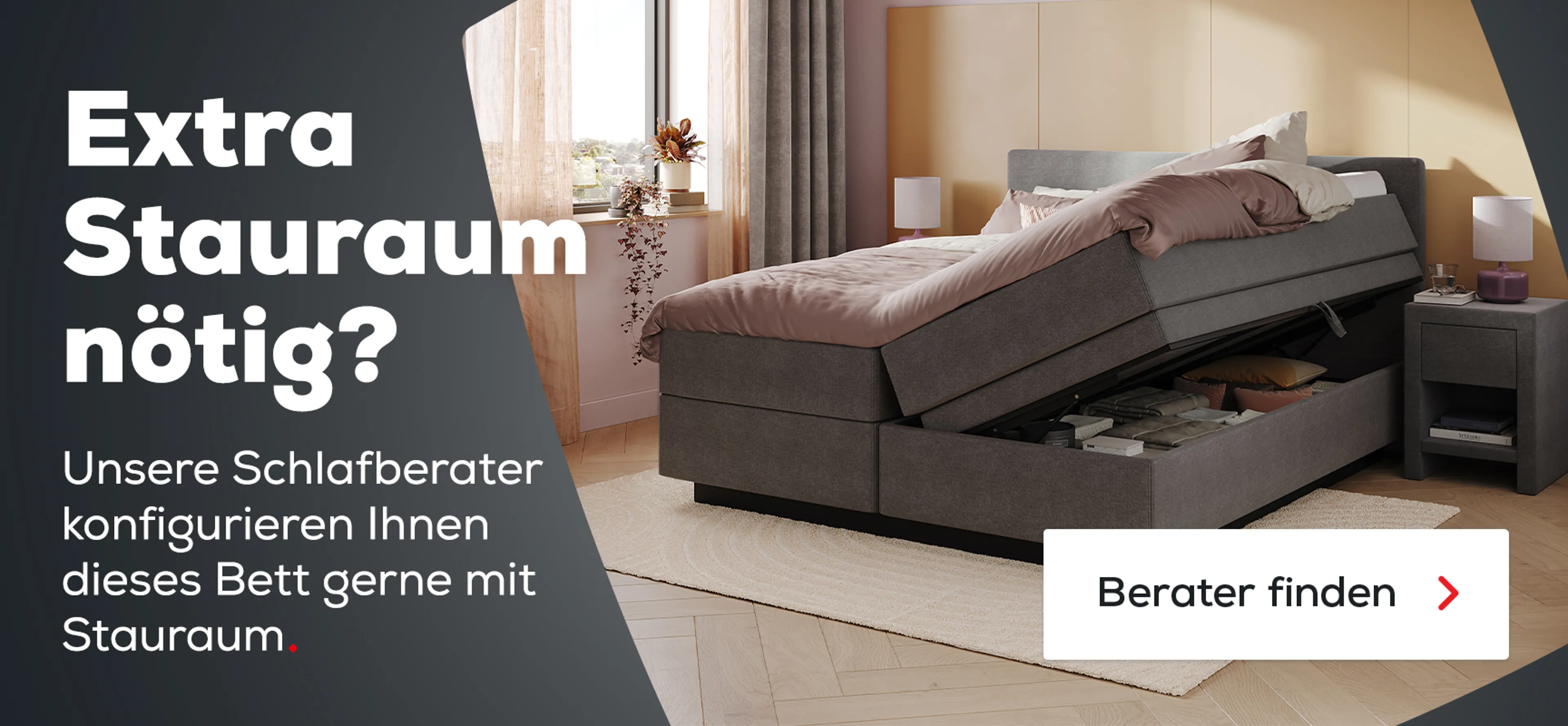 Die Boxspringbetten aus unserer Kollektion können Sie ganz nach Wunsch zusammenstellen. Von Stoff und Farbe über Bettfüße bis hin zu Matratze und Topper.