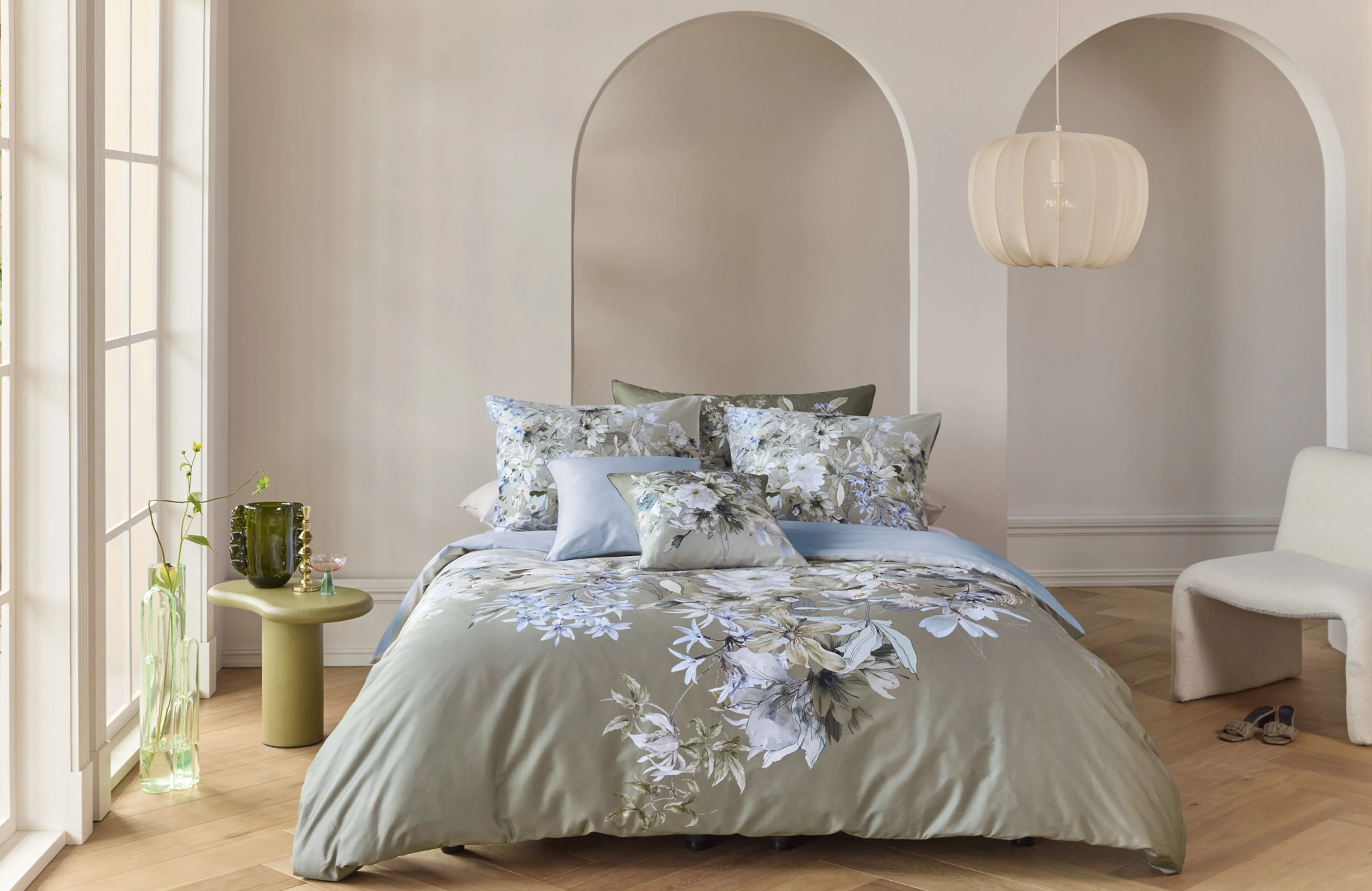 Bei der Bettwäsche Saffron von Kardol by Beddinghouse denkt man vielleicht an die Farbe Gelb, aber die Safranblüten haben in Wirklichkeit einen zarten Blau und Lila Ton. Diese zarten Blumen und luftigen Zweige sind diagonal angeordnet und sorgen für einen modernen und einzigartigen Look. Das Design hat einen subtilen Farbverlauf von hellem Sand über Blaugrau bis hin zu sanftem Kamel, was für einen raffinierten Look sorgt. Diese Bettwäsche bringt eine harmonische Mischung aus Naturtönen und floralen Elementen in Ihr Schlafzimmer. Die Rückseite ist in einem neutralen, sanften Graublau gehalten.