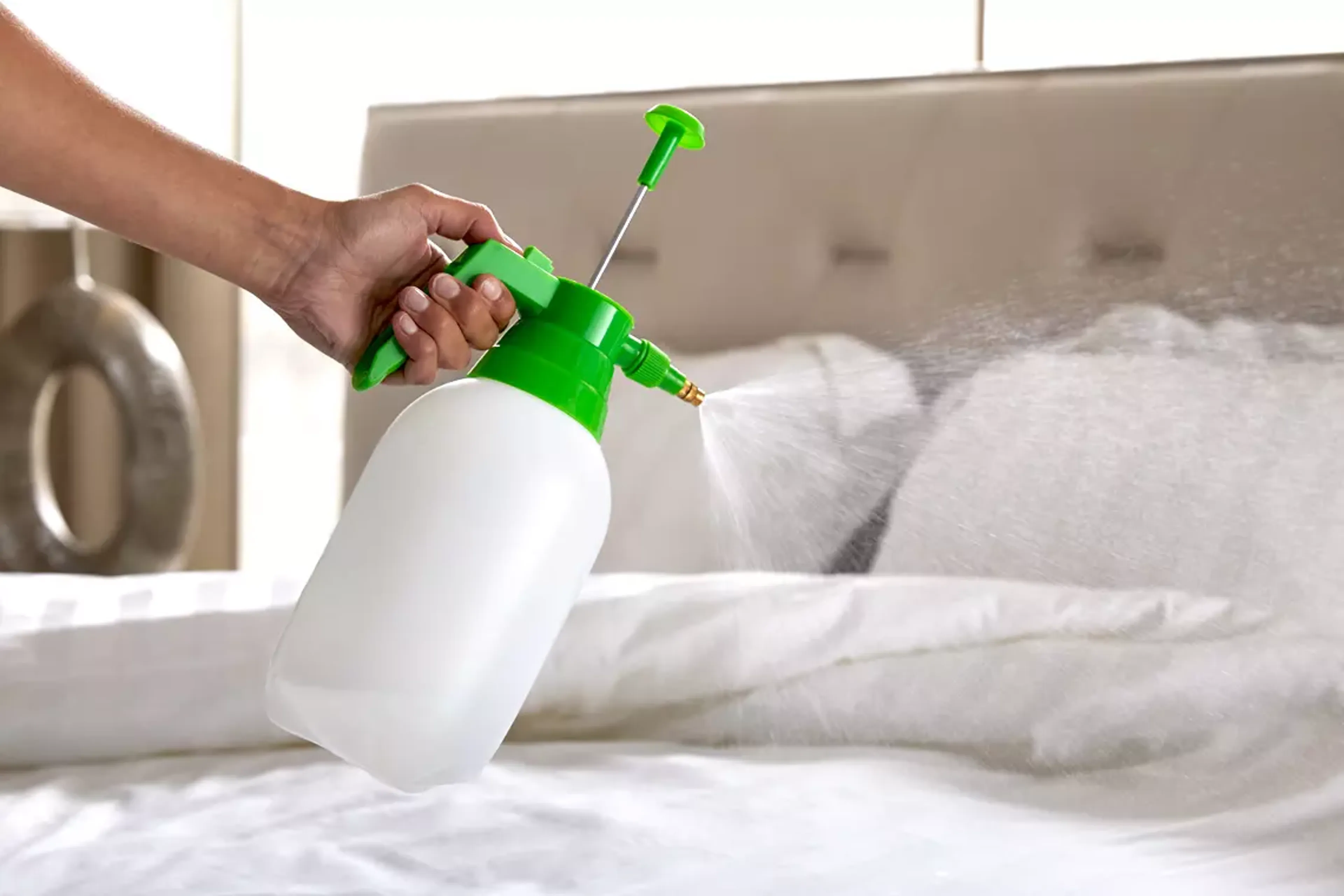 Möchtest du dir noch ein bisschen Hotelgefühl ins Schlafzimmer holen? Dann füge dem Wasser in der Sprühflachen einen Tropfen deines Lieblingsparfüms hinzu, und dein Schlafzimmer duftet herrlich frisch!